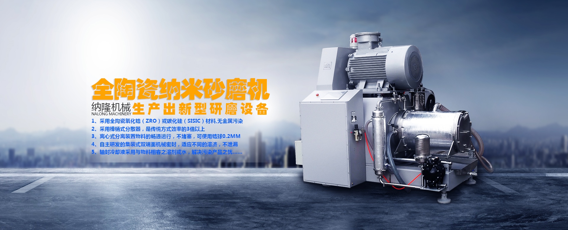 纳隆机械是一家从事汽车漆砂磨机、墨水砂磨机、锂电砂磨机、硅碳砂磨机、叶片式砂磨机、实验室砂磨机、棒钉砂磨机、普通砂磨机研发、生产、销售、以全陶瓷砂磨机的高科技企业,公司生产的系列陶瓷砂磨机是为解决市场上越来越高的需要研磨,物料不能有金属离子污染的企业而研发的一款砂磨机。该系列砂磨机采用离心方式出料,大流量,无堵塞,无金属离子污染,是砂磨机行业中掌握研磨方案的先行者。我们可以根据客户要求的产能细度,物料等,做出针对性的设计,为你的研磨产品提供完善的解决方案,设备销往广东、江西、安徽、江苏、山东、浙江、福建、上海等地。